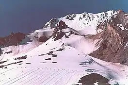 Palmer Glacier is a glacier on the south slopes of Mount Hood in the U.S. state of Oregon.[2] The glacier is situated at an elevation range of 9,300 to 6,200 feet (2,800 to 1,900 m), and was named for Joel Palmer, an Oregon pioneer. Palmer Glacier is the most well-known of the twelve glaciers on the mountain, and is a popular destination for snow sport enthusiasts. Some of the lower part is within the Timberline ski area, and can be accessed by Sno-Cat or chairlift, conditions permitting.