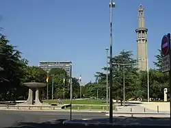 The Perret tower, originally called La tour pour regarder les montagnes ("The tower for looking at the mountains"),[4] is an observation tower located in Grenoble, in the Paul Mistral public park. It is the first tower built in reinforced concrete in Europe.[5] In 1998, it was officially declared to be a national heritage site.[6] It was built for the International Exhibition of Hydropower and Tourism[7] where it was the orientation tower and the symbol of the exhibition. Nowadays, it is the last vestige of this exhibition.[7]
