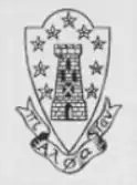 The membership badge was a black enamel shield surrounded by jewels. The Greek letters, in gold, were inscribed vertically on the shield. A jewel was between the enamel and the surrounding jewel photo.[7]