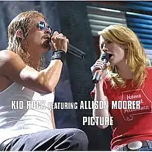 "Picture" is a duet written by American music artists Kid Rock and Sheryl Crow, released on November 12, 2002, as the fourth single and ninth track from Kid Rock's 2001 album Cocky. The original recording on the album is performed by the song's writers. Rock re-recorded the song for radio with alternative country singer Allison Moorer because Atlantic was initially unable to get the rights from Crow's label to release the album version as a single.[2] When the Moorer version was released, some radio stations began playing the Crow version instead, leading Billboard to credit the song variously to Kid Rock featuring Sheryl Crow or Allison Moorer. The song was a commercial and critical success and was nominated for Vocal Event of The Year at the 2003 Country Music Association awards.