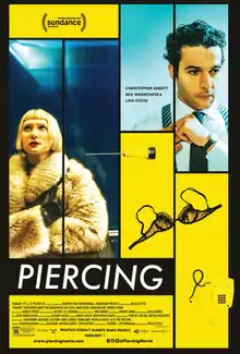 Piercing is a 2018 American horror thriller film written and directed by Nicolas Pesce, based on the novel of the same name by Ryū Murakami. It stars Christopher Abbott, Mia Wasikowska, and Laia Costa, and features Maria Dizzia, Marin Ireland, and Wendell Pierce in supporting roles.