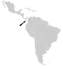 The Pirre hummingbird is found on a few isolated ridges in Panama's eastern Darién Province and in adjacent Chocó Department in Colombia. It inhabits the understory of the edges and interior of humid montane forest at elevations between 600 and 1,650 m (2,000 and 5,400 ft).[11]
