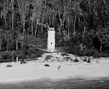 The Plum Island Range Lights are a pair of range lights located on Plum Island in Door County, Wisconsin. They were part of the Plum Island United States Life-Saving Station. Plum Island was transferred to the United States Fish and Wildlife Service in 2007 and became part of the Green Bay National Wildlife Refuge. The life-saving station was listed on the National Register of Historic Places in 2010. Plum Island is seasonally open to the public for day-time use.