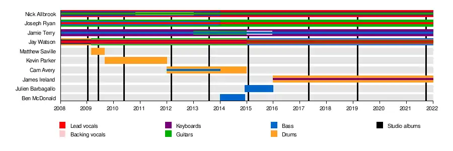 - Jamie Terry – keys, synth, organ, bass, occasional guitar, production (2008–present)