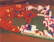 Bullfrog attempted to prototype the gameplay via a board game they invented using Lego, and Molyneux admits that whilst it didn't help the developers to balance the game at all, it provided a useful media angle to help publicise the game.[8][11] One curious incident related in media coverage involved an attempt by Molyneux to investigate the displacement of water when adding blocks to the world model, this being frustrated by Lego not being watertight and thus causing a "flood" that "dissuaded further experimentation".[12]