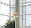 Three-shade system lamps in different forms at Louis Poulsen's Showroom in Copenhagen