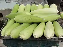 Just like the cultures that inhabited Mexico before the Columbian exchange, the modern Mexican diet is heavily based on corn, beans, and peppers. Corn possesses the same importance in the region today that it did in the past. It remains the essential food product in Mexico and is utilized in a variety of ways. Also, beans are consumed in conjunction with corn like in the past. Other native plants that remain prevalent in Mexico's cuisine include: tomatoes, squash, onions, tomatillos, chayote, avocados, and cactus.[4]
