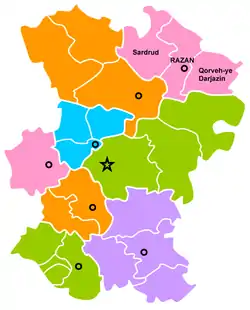 Qorveh-e Darjazin County (Persian: شهرستان قروه درجزین) is in Hamadan province, Iran. The capital of the county is the city of Qorveh-e Darjazin. At the 2006 census, the region's population (as Qorveh-e Darjazin District of Razan County) was 39,852 in 9,842 households.[1] The following census in 2011 counted 40,253 people in 11,558 households.[2] At the 2016 census, the district's population was 36,999 in 11,626 households.[3] It was separated from Razan County in 2019 to form Qorveh-e Darjazin County.[4]