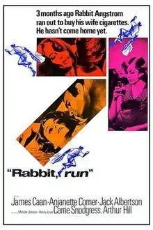 Rabbit, Run is a 1970 American independent drama film directed by Jack Smight. The film was adapted from John Updike's 1960 novel by screenplay writer Howard B. Kreitsek, who also served as producer. The film starred James Caan as Rabbit Angstrom, Carrie Snodgress as Rabbit's wife Janice, and Anjanette Comer as his girlfriend Ruth. The movie co-starred Jack Albertson as Coach Marty Tothero, Arthur Hill as Rev. Jack Eccles, and Henry Jones and Josephine Hutchinson as Rabbit's parents.[1][2]