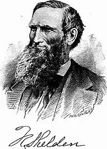In 1871 Shelden was elected as president of the town, a position he held for seven years until his death on May 17, 1878.[2] The main street of Houghton, variously called "Sheldon Street," (inaccurately) "Shelden Avenue" and "Sheldon Avenue," was named in Shelden's honour, as was the "Sheldon Center".
