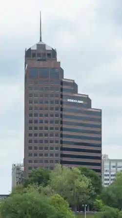 Raymond James Tower is a 21-story skyscraper and is the second tallest building in Memphis, Tennessee. The building is located at the corner of North Front Street and Jefferson Avenue and South Main Street. It is 403.0 feet (122.8 m) tall, including a 61.0 feet (18.6 m) spire, and has 334,668 square feet (31,091.7 m2) of office space.[2]
