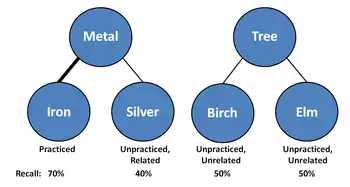 Although the typical paradigm includes retrieval practice of previously studied words, some studies have shown RIF even when participants were asked to retrieve something else. For instance, RIF has occurred even when participants generated new, unstudied items from previously studied categories in what is called "extra-list retrieval practice" or "semantic generation."[16][31] In a method called "impossible retrieval practice," RIF has also been observed when participants were asked to generate a word for a category, even though one did not actually exist.[31][32] RIF is still observed at final test in cases where successful retrieval is not possible, such as one where having studied a number of fruits a participant is asked to generate a word given a cue resembling FRUIT–wu.[31] Some studies have also examined the effect on RIF when participants, instead of being asked to perform retrieval practice, are given additional study trials making them restudy the material instead of remembering prior information. In these cases, participants have failed to show any RIF effects.[11][24]