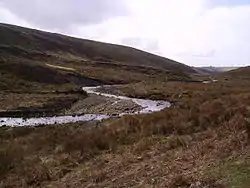 The river rises near Fiendsdale Head in the Forest of Bowland and flows first westwards then southwards through the villages of Oakenclough and Calder Vale[3] before passing under the M6 motorway, West Coast Main Line and under the Calder Aqueduct on Lancaster Canal.[4] It meets the Wyre at Catterall near the town of Garstang, at which point the Calder forms the boundary between the parishes of Catterall and Barnacre-with-Bonds.[5]