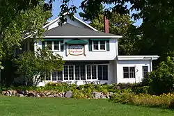 At the turn of the century, the tourist population around Leland was steadily growing.[2] In 1902, seeing a demand for lodging, Jacob Schwarz constructed an inn near this location. Schwarz constructed other buildings in the area, including, in 1912, a bathhouse that he soon converted into a dance hall. Schwarz ran the Riverside Inn until his death in 1917. His wife followed in 1918, and ownership of the inn passed to the couple's daughters, Blanche and Anna. They ran the inn until 1924, when it was destroyed by fire.