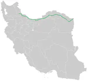 This road is in northern Iran.[2] It connects Sarakhs at the border with Turkmenistan to Mashhad, then to Gorgan, and afterwards it runs parallel to the Caspian Sea. Most parts of this road are expressways but some of them are in the Golestan Jungle.[3]