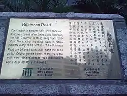 Nathan Road in Kowloon, where Bruce Lee was a resident, was also called Robinson Road until 1907. The road was subsequently renamed to avoid confusion with its Mid-Levels counterpart.[5]