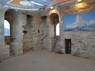 The inside of the fortress (where, in 1972, some scenes of the movie "Brother Sun, Sister Moon", directed by Franco Zeffirelli keep.[7])leads to the entrance of the round bastion, commissioned in 1535 by Paul III. There is a large fenced yard, where were the rooms of service, and the male, former home of the castle, divided into four rooms accessible by a spiral staircase.[8]