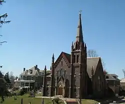 Pope Pius VII on June 19, 1821, erected the Diocese of Cincinnati, taking the entire state of Ohio from the Diocese of Bardstown.[3] The visit of Cincinnati Bishop John Purcell, to central Ohio in June 1836, began the activity of the Catholic Church in the city of Columbus. After saying Mass in a house on Canal Street on June 5, Purcell asked the Catholic men in attendance to meet regarding the construction of a church. A plan was developed to build a church on a lot already owned by the Catholics of the area—where Holy Cross Church now stands. In 1837, the diocese sent a resident pastor, Reverend Henry Juncker, to cover the Columbus and Chillicothe, Ohio areas. He built Holy Cross Church on the site owned by the parishioners, opening it on April 29, 1838 with a Sung Mass. By 1843, Holy Cross parish was scheduling multiple masses on Sundays and building a school.[2]