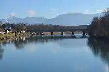 ![]() Aerial view of Rosenheim (foreground) and Simssee (background); in between from left to right the Inn river | |