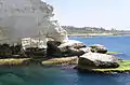 Rosh HaNikra or Hanikra (Hebrew: ראש הנקרה, lit. "Head of the Grotto"; Arabic: رأس الناقورة, Ras an-Nakura) is a geologic formation on the border between Israel and Lebanon, located on the coast of the Mediterranean Sea, in the Western Galilee. It is a white chalk cliff face which opens up into spectacular grottos.