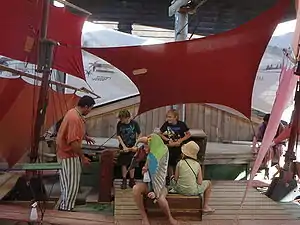 In 1998, the Company undertook to operate the Strahan Visitor Centre, curating an exhibition created by Robert Morris-Nunn and Richard Flanagan, and providing printed information to tourists. As an added income stream, the company provides up to four daily guided tours on Sarah Island, incorporating dramatic performances.
