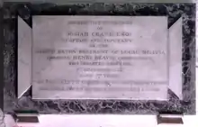 - Sacred to the memory of Josiah Crane Esq., Captain and Adjutant of the North Devon Regiment of Local Militia. Colonel Henry Beavis, Commandant, who departed this life 7th December 1813 aged 77 years. This monument is erected by his brother officers as a small token of their respect and esteem.