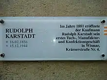 Rudolph Karstadt (16 February 1856 – 15 December 1944 in Schwerin) was a German entrepreneur.