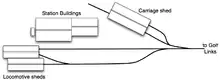 There were two small Bagnall steam locomotives, "Camber" and "Victoria", but in later years a small petrol locomotive was used exclusively.[1]