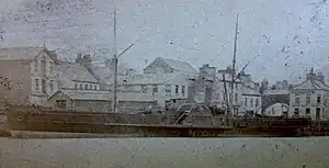 SS (RMS) Ellan Vannin (the Manx name for the Isle of Man) was built as an iron paddle steamer in 1860 at Meadowside, Glasgow for the Isle of Man Steam Packet Company. She was originally named Mona's Isle - the second ship in the company's history to be so named. She served for 23 years under that name before being rebuilt, re-engined and renamed in 1883. As Ellan Vannin she served for a further 26 years before being lost in a storm on 3 December 1909 in Liverpool Bay.[3]