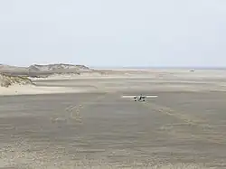 Prior permission is required to land at this aerodrome.[1] Prior to aircraft landing or taking off, the Operations Coordinator of Parks Canada's Sable Island Station must thoroughly inspect the area in use that day to ensure that it is not too soft. This is accomplished by driving a Jeep up and down the length of the landing area, thereby marking out the "runway". Too much rain will render the sand too mushy to safely land the aircraft; conversely, in the summer, the sand may dry out to such an extent that the area becomes too soft.