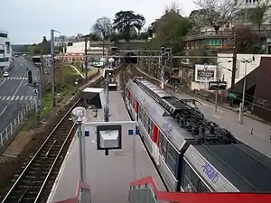 The station is on line L and U trains of the Transilien Paris–Saint Lazare network. It is at the junction of the Saint-Nom-la-Bretèche and Versailles–Rive Droite branches. Up until 1930, there was a branch about 160 m long providing service to the Château de Saint-Cloud.[1]