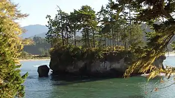 Salt Creek Recreation Area is a 196-acre park located about 15 miles west of Port Angeles, Washington on U.S. Route 101 near the city of Joyce, Washington. The park was previously Camp Hayden, a World War II military camp built 1942–1945. The site was established as the Striped Peak Military Reservation in 1941, renamed as Camp Hayden on 22 October 1942, and renamed again as Fort Hayden on 17 April 1944. It was named for Brigadier General John Louis Hayden, a former commander of the Harbor Defenses of Puget Sound. It was purchased by the Federal General Services Administration after the war. There are still several structures left from the fort, including two large casemates which sheltered 16" guns and several other structures. The 16-inch battery was Battery 131, with two ex-Navy 16-inch Mark 2 guns capable of firing a one-ton projectile around 28 miles connected by a large magazine bunker. The camp also had Battery 249, which had two 6-inch guns with a bunker housing magazines and fire control equipment.[1]