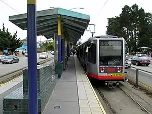 San Francisco State University station is a light rail station on the Muni Metro M Ocean View line, located adjacent to San Francisco State University and the Parkmerced neighborhood in the median of 19th Avenue in San Francisco, California. It opened in 1925 with the first phase of the line and was rebuilt with a high-level island platform in 1993. The station is accessible.[3]