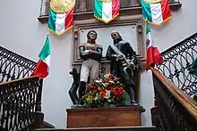 The prominence of the city declined at the beginning of the 19th century, mostly due to the Mexican War of Independence. However, it played an important early role in this conflict. It is the birthplace of two significant figures of the war, Juan Aldama and Ignacio Allende. Both were involved in a conspiracy against the colonial government in Mexico City, along with Miguel Hidalgo y Costilla and Josefa Ortiz de Domínguez. When this conspiracy was discovered, the warning to Hidalgo and Allende passed through this town and onto Dolores (Hidalgo), just to the north. This prompted Hidalgo's "Grito de Dolores" assembling the insurgent army on 15 and 16 September 1810. The new insurgent army first came to San Miguel, stopping at a religious sanctuary in Atotonilco just outside. Hidalgo took a standard bearing an image of the Virgin of Guadalupe from here;[5] this standard is now in the Museo del Ejercito in Spain.[14] Then the army entered San Miguel proper, to name officers and to free prisoners in the local jail.[5][8] San Miguel was the first Mexican town to gain its independence from Spain.[9]: 4