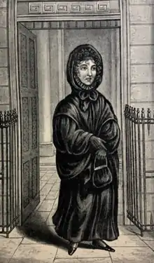 The news of her brother's conviction and execution was kept from his sister, Sarah Whitehead, as long as possible.[1] However, upon hearing the news, Whitehead's mental health became unstable and she visited the Bank daily, asking if he was there.[1] This continued until 1818, when the Directors offered Whitehead a financial grant on the condition that she stopped coming to the bank.[1] Whitehead wore black crepe clothing, which was a sign of mourning, and as a result became known as the 'Bank Nun'.[1]