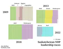 An election for the leadership of the Saskatchewan New Democratic Party was held on June 26, 2022 in Regina following the resignation of Ryan Meili.[15] Carla Beck was declared as the first elected female leader of the party at this convention.[16]