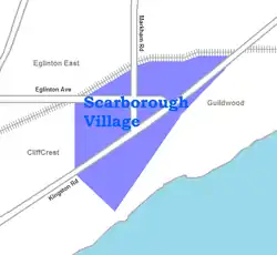 Scarborough Village is a neighbourhood in Toronto, Ontario, Canada, located in the Scarborough district. It was one of the earliest settlements in the former township of Scarborough with the distinction of being the site of the township's first post office. Today, the neighbourhood is composed of private and public housing, apartment complexes, schools, a few condominiums, and strip mall plazas. The neighbourhood lies along the Scarborough Bluffs escarpment.