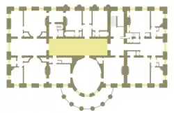 The Center Hall is a broad central hallway on the second floor of the White House, home of the president of the United States. It runs east to west connecting the East Sitting Hall with the West Sitting Hall. It allows access to the elevator vestibule, East and West Bedrooms, the Grand Staircase, Yellow Oval Room, the first family's private living room, and the president's bedroom.