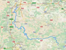 It originates near Azoudange, in the department of Moselle. Leaving the Lindre lake, it skirts the town of Dieuze, and traverses Vic-sur-Seille and Nomeny, before flowing into the Moselle at Metz. It is 138 km long,[1] and has a basin area of 1348 km2. Most of its length is in the department of Moselle, except for the part between Aulnois-sur-Seille and Cheminot, which is in Meurthe-et-Moselle. The Seille also forms the border between Moselle and Meurthe-et-Moselle from Chambrey to Aulnois-sur-Seille.