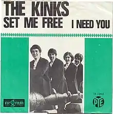 "Set Me Free" is a song by Ray Davies, released first by the Kinks in 1965. Along with "Tired of Waiting for You", it is one of band's first attempts at a softer, more introspective sound. The song's B-side, "I Need You", makes prominent use of powerchords in the style of the Kinks' early, "raunchy" sound. "Set Me Free" was heard in the Ken Loach-directed Up the Junction, a BBC Wednesday Play which aired in November 1965; this marked the first appearance of a Kinks song on a film or TV soundtrack.