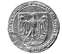 - His banners had white eagle without a crown on a red filed as their badge according to Banderia apud Grunwald. Andrzej Klein, Nikolas Sekunda, Konrad A. Czernielewski: Banderia Apud Grunwald. Łódź 2000, p. 58-59.