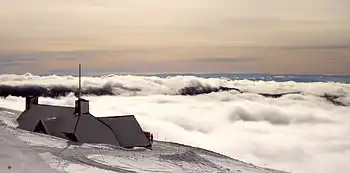 The Silcox Hut is a small rustic mid-mountain lodge located at 6,950 feet (2,120 m) elevation on Mount Hood, Oregon, United States. It is approximately 1,000 feet (300 m) vertical above Timberline Lodge and roughly one mile distance directly up the mountain.