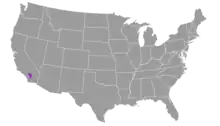 The southern rubber boa is distributed across the San Bernardino and San Jacinto Mountains, at elevations between 4,900 and 7,900 feet. Phylogenetic analyses have conclusively distinguished northern and southern boas and identified an area in Northeastern California containing populations of both subspecies.[6] Some intergrades between northern and southern boas have been located in isolated populations in the Southern Los Padres Ranges.[6][7]