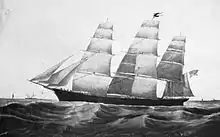 Built by Donald McKay of East Boston, Massachusetts, Sovereign of the Seas was the first ship to travel more than 400 nautical miles in 24 hours.[3] On the second leg of her maiden voyage, she made a record passage from Honolulu, Hawaii, to New York City in 82 days. She then broke the record to Liverpool, England, making the passage in 13 days 13.5 hours. In 1853 she was chartered by James Baines of the Black Ball Line, Liverpool for the Australia trade.