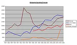 | Football (soccer) | Suncorp Stadium | 235,349 | 13,075 | Queensland Roar home games (18) |