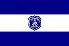 The official college flag consists of two navy blue stripes and a white stripe in the middle which are all equal in size. In some occasions, a flag with the college Crest placed in the middle is also used.