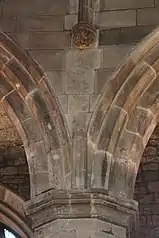 In 1322 during the First Scottish War of Independence, troops of Edward II of England despoiled Holyrood Abbey and may have attacked St Giles' as well.[46] Jean Froissart records that, in 1384, Scottish knights and barons met secretly with French envoys in St Giles' and, against the wishes of Robert II, planned a raid into the northern counties of England.[47] Though the raid was a success, Richard II of England took retribution on the Scottish borders and Edinburgh in August 1385 and St Giles' was burned. The scorch marks were reportedly still visible on the pillars of the crossing in the 19th century.[48]