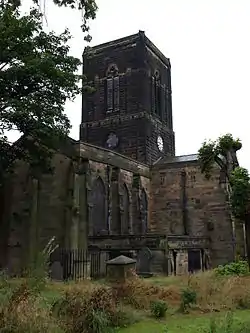The current building dates from 1837 and it was designed by Thomas Rickman and built by W. Surplice of Nottingham.[3] It was one of the earliest Gothic Revival buildings in Nottinghamshire.[4] It is a Commissioners' church, having been given a grant towards the cost of its construction by the Church Building Commission; the full cost of the church was £4,511 (equivalent to £420,000 in 2021),[5] towards which the Commission granted £1,303.[6] The clock was installed by Reuben Bosworth.