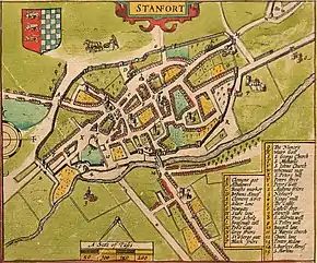 By the early 1500s the wool and broadcloth industry in England, on which Stamford depended, had declined significantly.[18] Stamford was sufficiently poor, financially and demographically, that in 1548 it had to amalgamate its eleven parishes into six and its population had reduced to 800.[19][20]