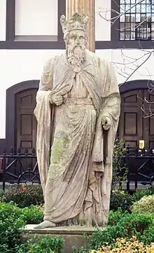 The statue stands in the garden in the centre of Trinity Church Square in Southwark.[2] It stands 2.6 metres (8.5 ft) high and depicts a broad-shouldered, bearded man wearing robes and a crown.[3] It is thought to depict the 9th-century Anglo-Saxon king Alfred the Great.[4] The rear of the statue is quite plain, and it may have been intended for display in a niche.[1]